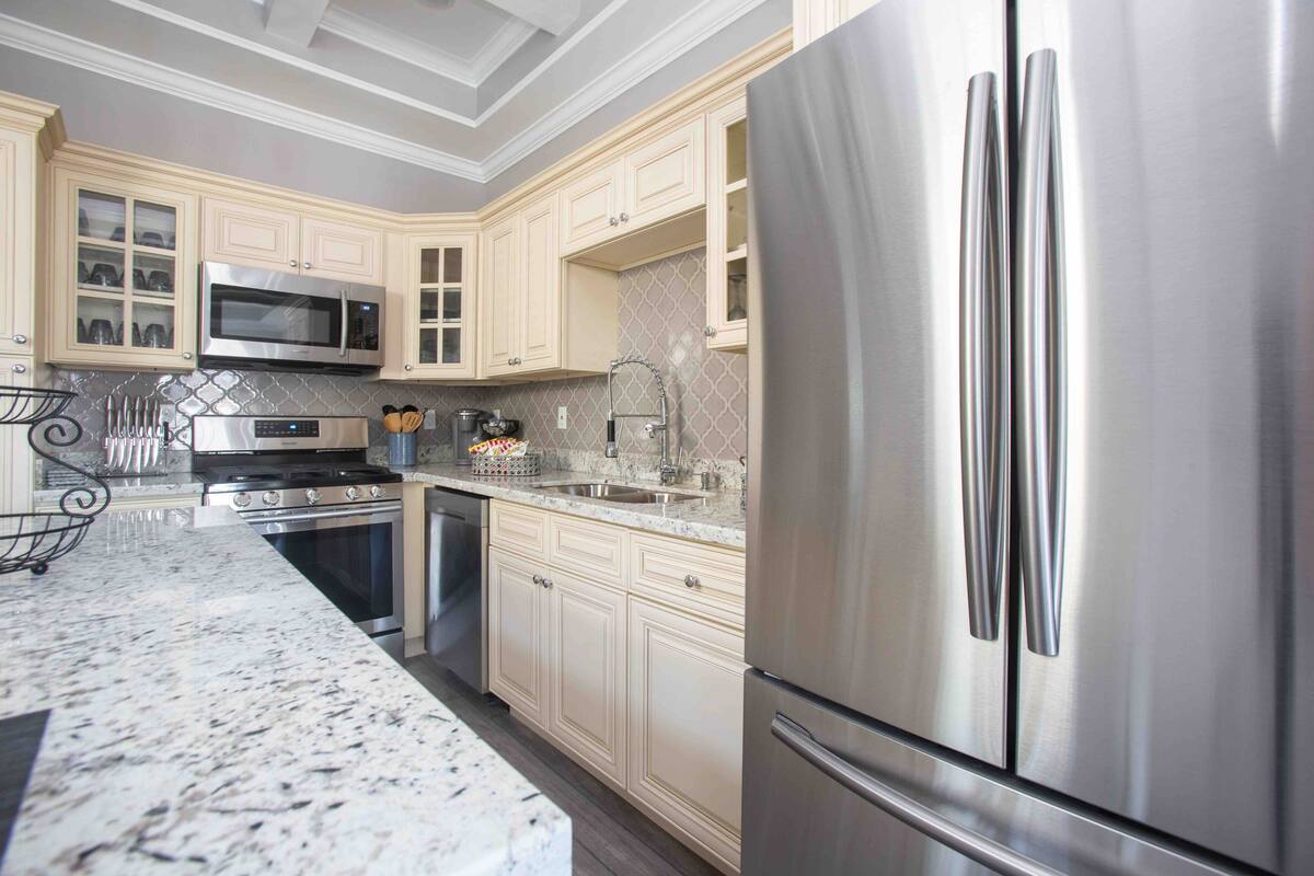 KITCHEN: Fully equipped with Keurig coffee maker, Stainless steel appliances, refrigerator w/ ice maker, Island with barstools.